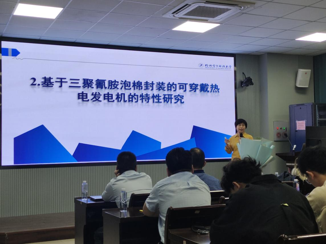讲座现场,苗蕾教授首先详细阐述了智能可穿戴设备以及热电发电机的概念、主要特征、主要途径及其主要作用等内容。随后苗蕾教授深入讲解了基于三聚氰胺泡棉封装的可穿戴热电发电机的特性探究,具体包括有限元仿真和优化、大规模半自动化制备器件以及测试并在人体上驱动电子设备。最后,苗蕾教授指出热电发电机要达到1%的效率比预期的更具有挑战性。