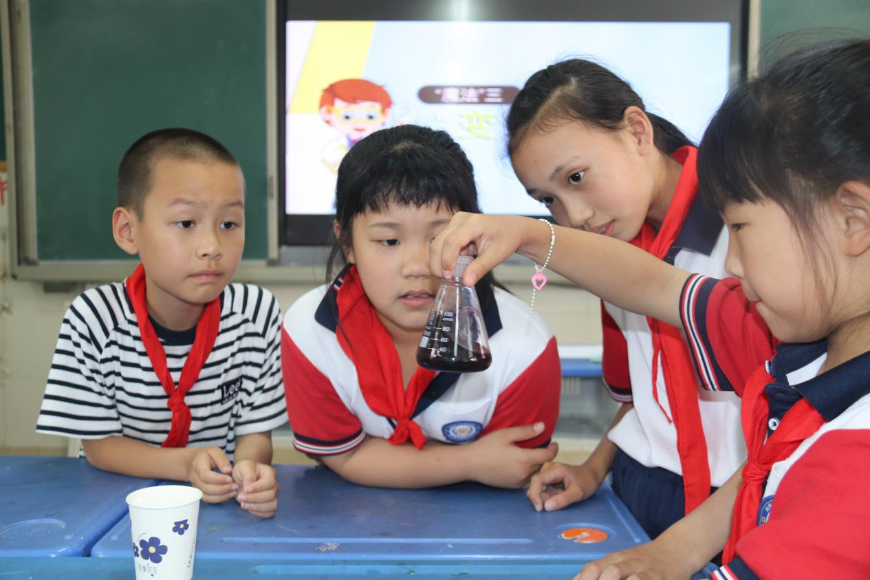 活动全程,师生间积极互动,氛围良好;小朋友们兴趣盎然、勤于思考,积极提问,他们看着神奇的实验现象时而惊喜,时而索眉,时而顿悟大笑。收获的笑容洋溢在同学们的脸上,对材料科学的向往之情充斥着同学们的心田。
